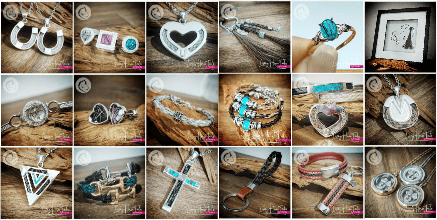 Hello and welcome to my small business Living Horse Tails, located in the beautiful Southern Tablelands of NSW, Australia. I am Monika and the designer and creator of your jewellery and keepsakes, using a variety of materials including your horse hair or mine, and a range of other materials like leather, silver, gold, pearls and so much. My creations are worn all around the world, and I love that I am able to create these special memorial pieces of horses we have lost, or still have with us today. I would be honoured if you would follow me and share my creations with others.~ Monika